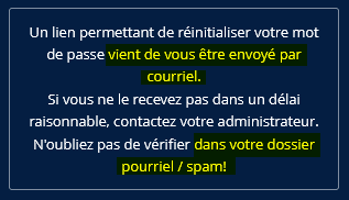 Une fenêtre s’affiche vous indiquant qu’un e-mail vient de vous être envoyé : (Attention, il faudra bien vérifier votre dossier de courrier indésirable !)