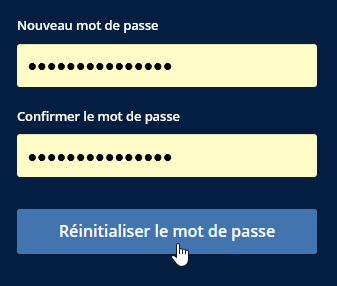 Ensuite, définissez un nouveau mot de passe et cliquez sur « Réinitialiser le mot de passe » :