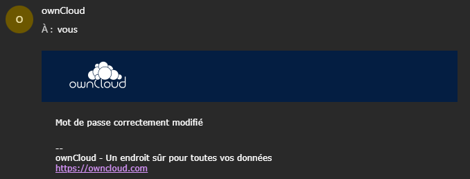 Vous recevrez un mail de confirmation vous indiquant que votre mot de passe a bien été changé :